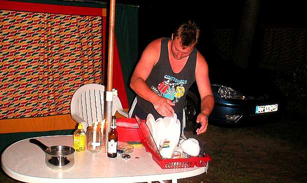 zu essen. Es bilden sich kleine Gesprächsrunden unter den Eurocampern